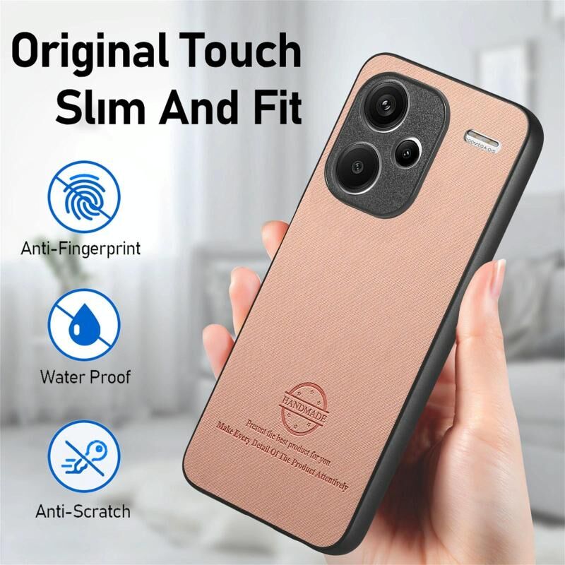 Θήκη κινητού τηλεφώνου από δέρμα με υφασμάτινη επένδυση Twill για Redmi Note 13 Pro+ (ρόζ)