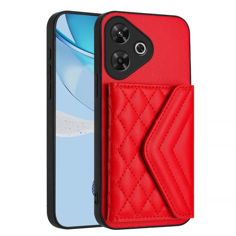 Για Redmi Σημείωση 13R Pro / 13 4G Rhombic υφή κάρτα τσάντα RFID υπόθεση τηλεφώνου με μακρύ κορδόνι (κόκκινο)