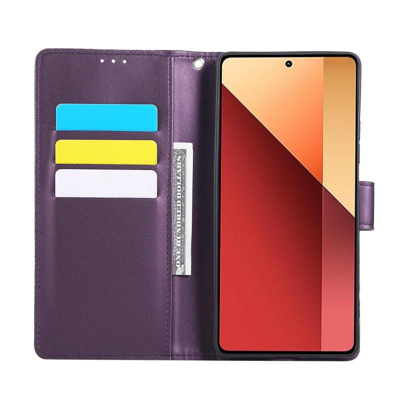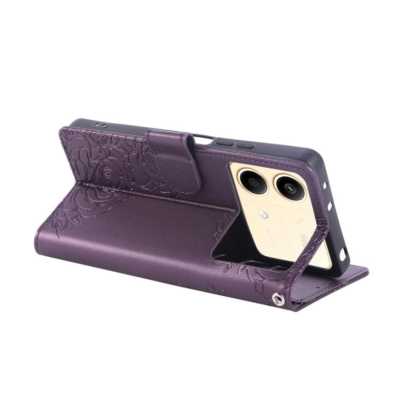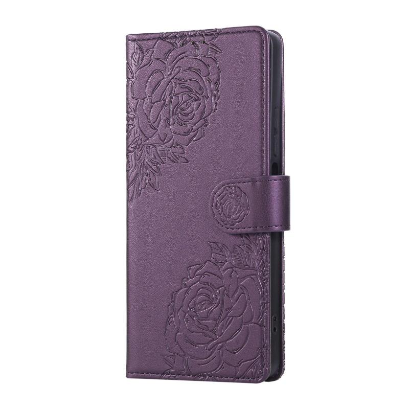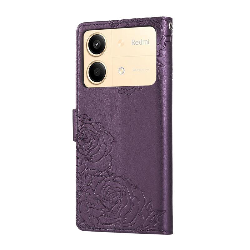 For Redmi Note 13R Pro Rose Flower Embossed 3-Card Slots Leather Phone Case(Deep Purple)