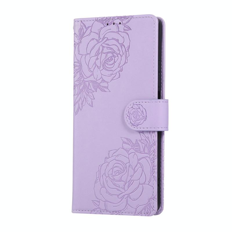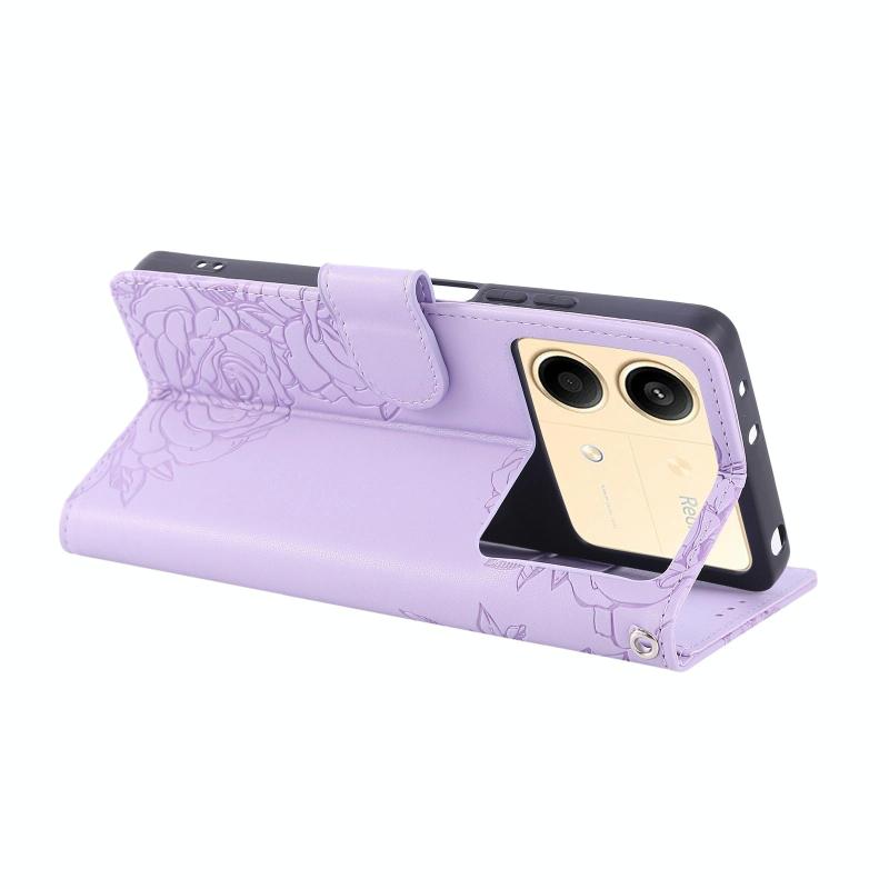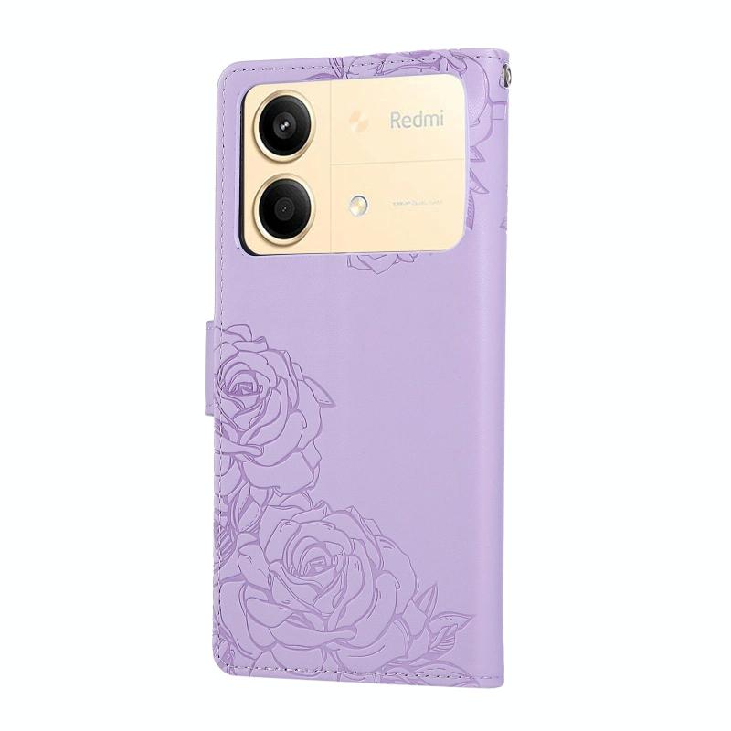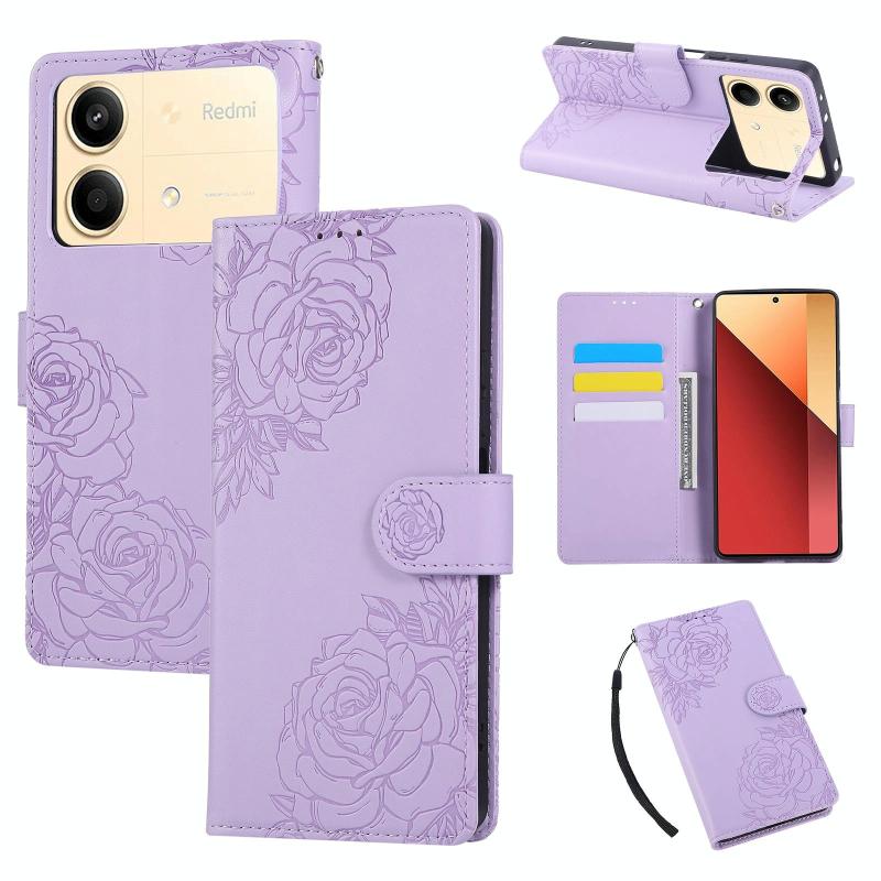For Redmi Note 13R Pro Rose Flower Embossed 3-Card Slots Leather Phone Case(Purple)