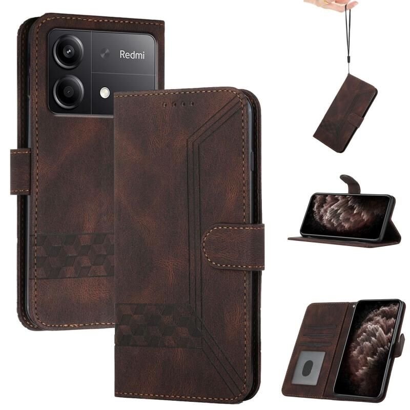 Για Redmi Note 13R Pro / Xiaomi Poco X6 Neo Cubic Skin Feel Flip δερμάτινη θήκη τηλεφώνου (Καφέ)