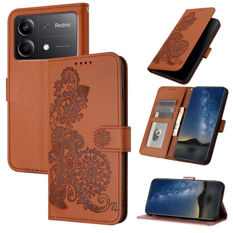 For Redmi Note 13R Pro / Xiaomi Poco X6 Neo Datura Flower Embossed Flip Leather Phone Case(Brown)