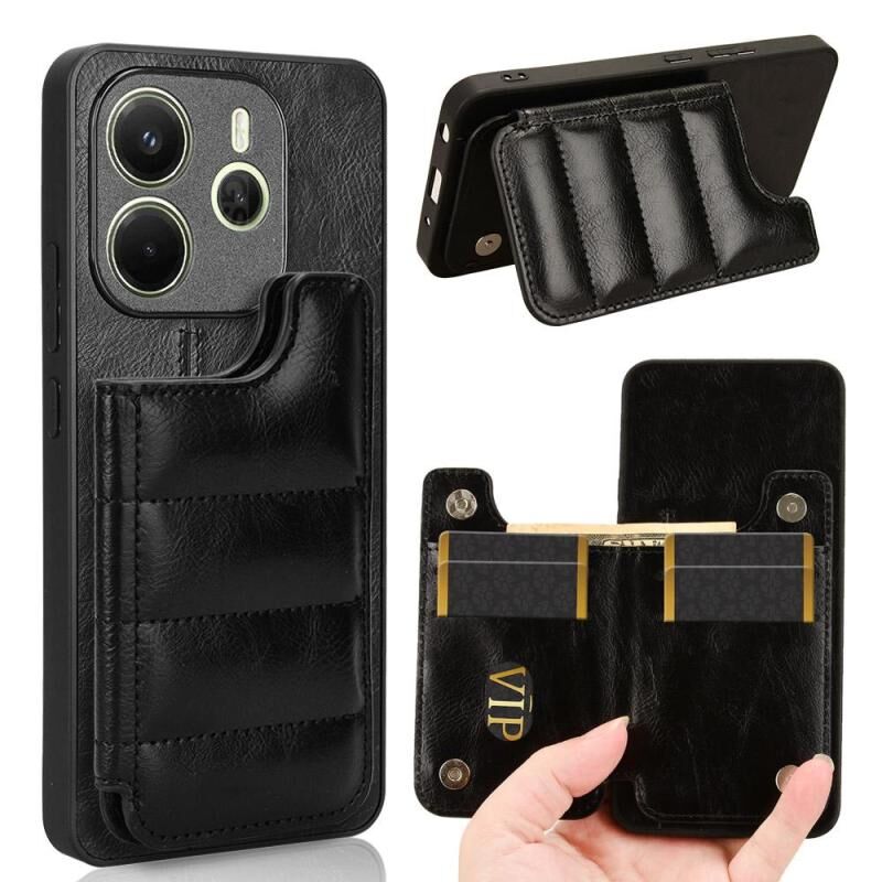 For Redmi Note 14 4G 163.25mm Cow Pattern Sewing Card Bag Phone Case(Black)