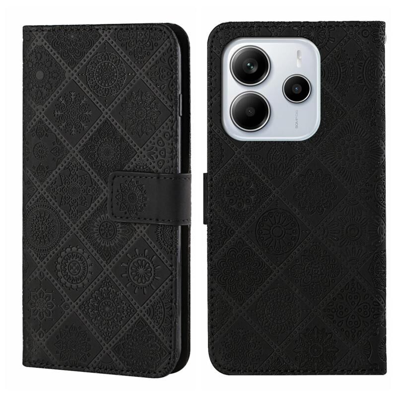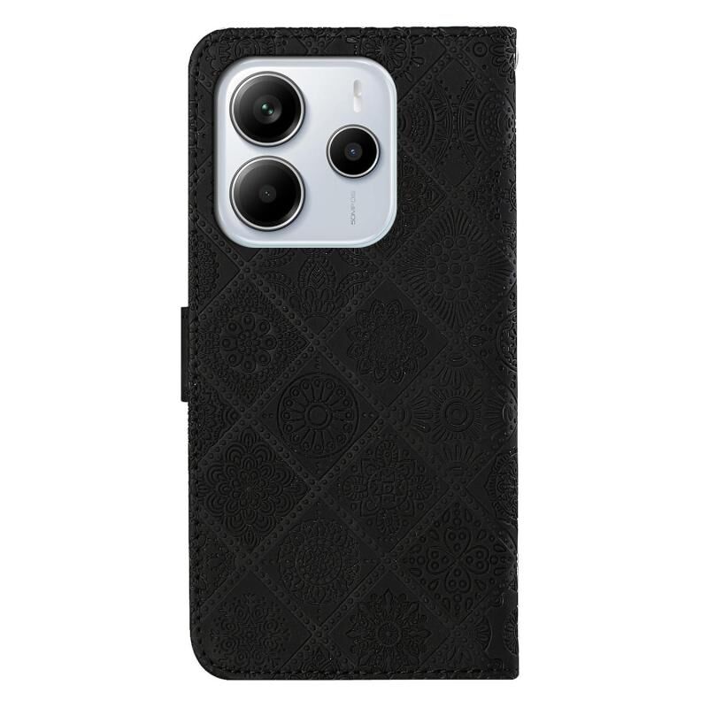 For Redmi Note 14 4G 163.25mm Ethnic Style Embossed Pattern Leather Phone Case(Black)