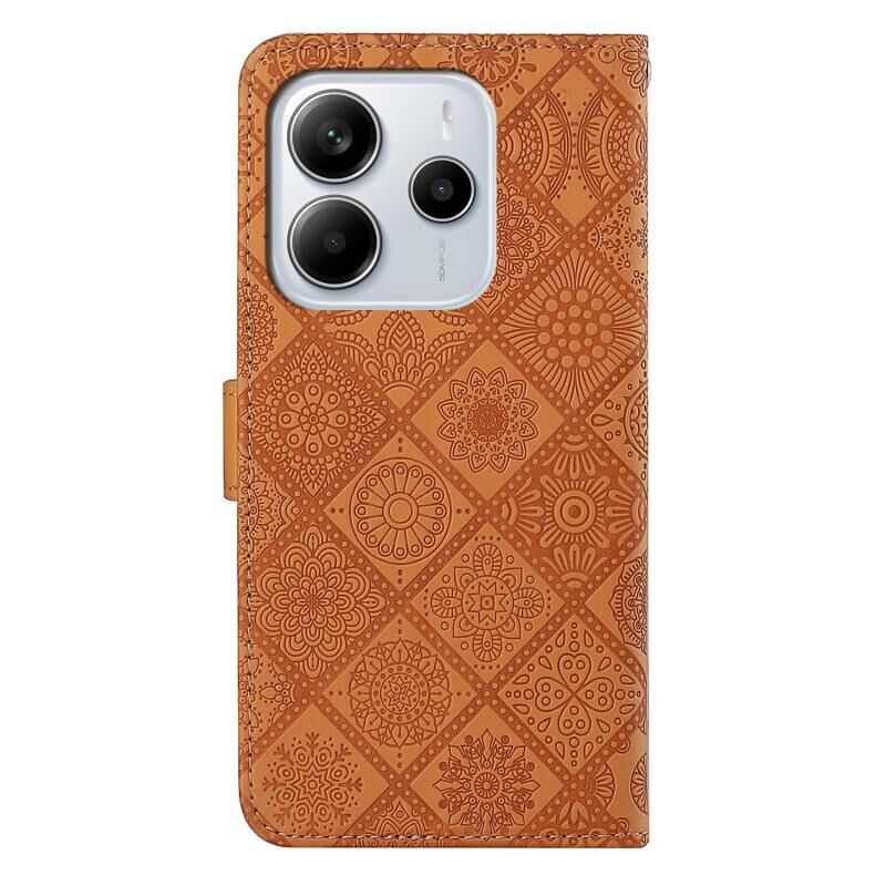 For Redmi Note 14 4G 163.25mm Ethnic Style Embossed Pattern Leather Phone Case(Brown)