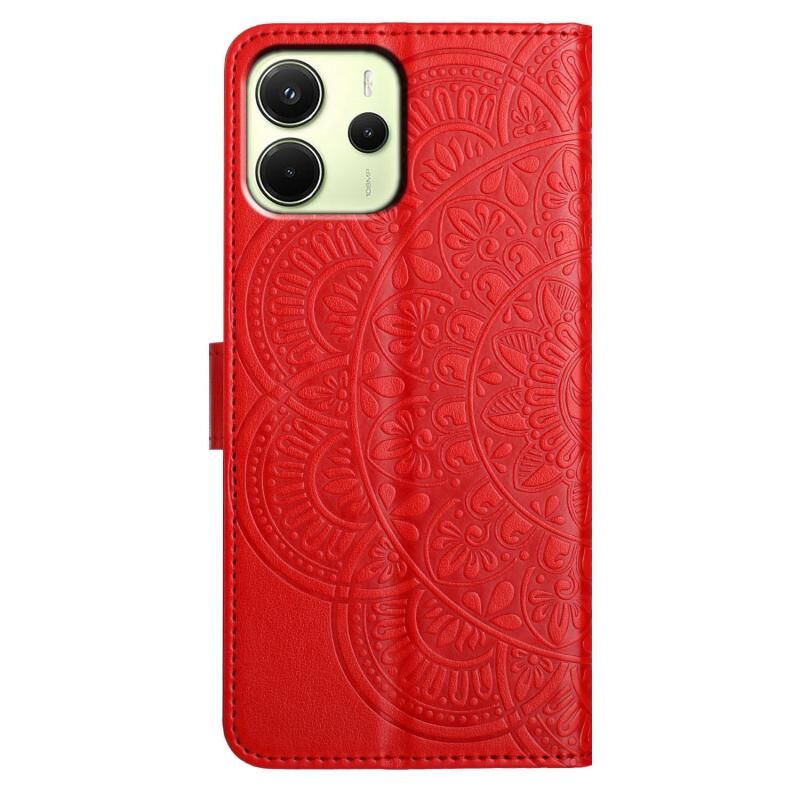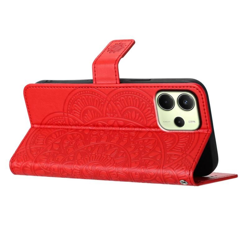 Θήκη τηλεφώνου από δέρμα με ανάγλυφο λουλούδι για Redmi Note 14 4G 163.25mm (Κόκκινο)