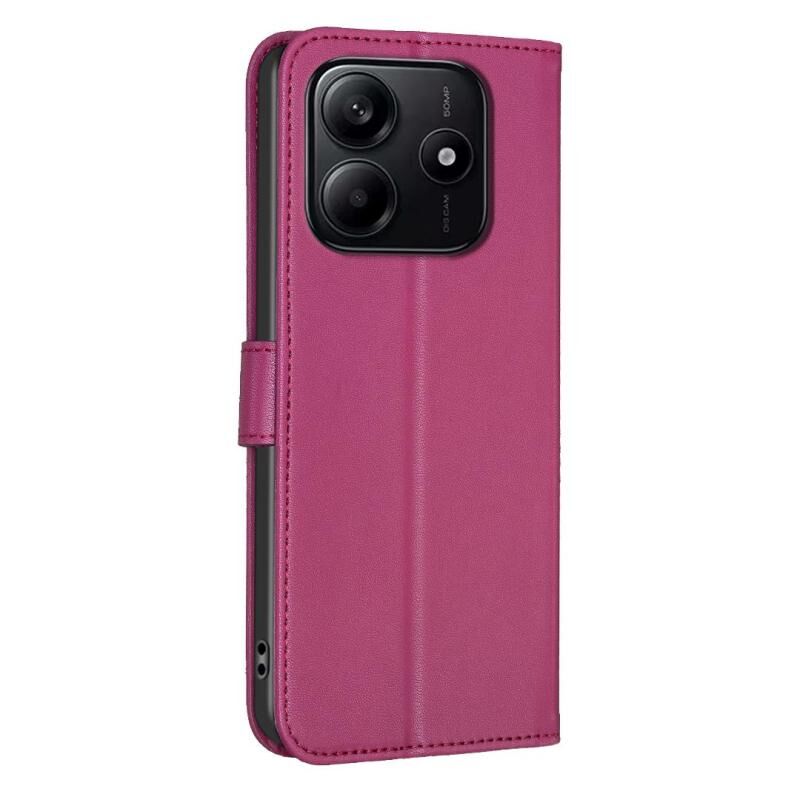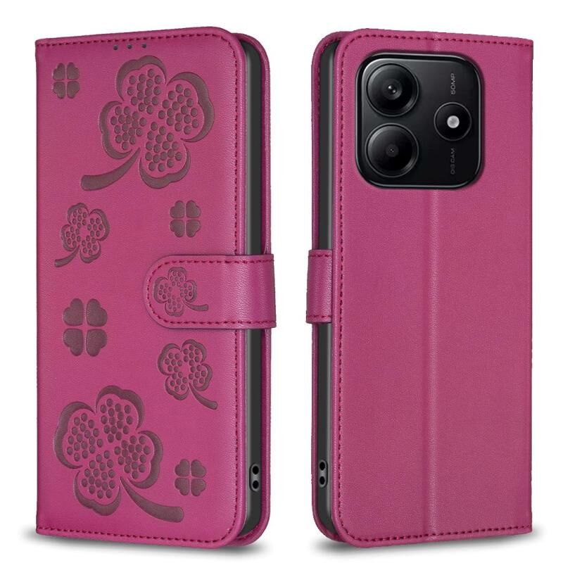 Θήκη τηλεφώνου από δέρμα με ανάγλυφο τετράφυλλο για Redmi Note 14 4G 163.25mm (Κόκκινο Ρόδι)