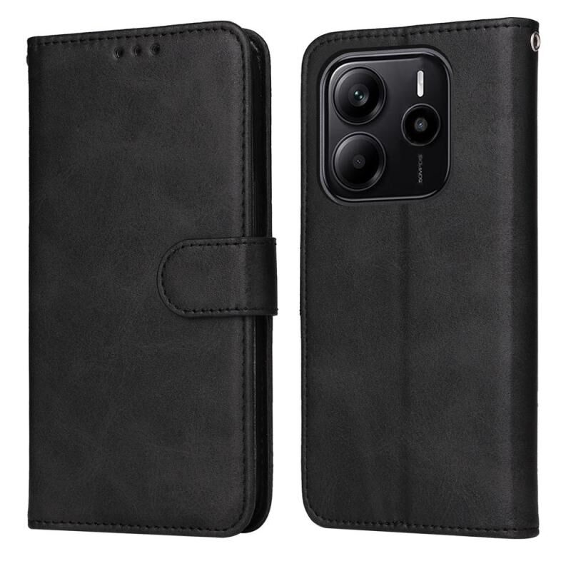 For Redmi Note 14 4G 163.25mm Global Classic Calf Texture Flip Leather Phone Case(Black)