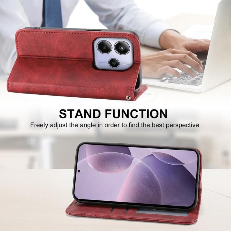 For Redmi Note 14 4G 163.25mm Global Cubic Grid Calf Texture Magnetic Leather Phone Case(Red)