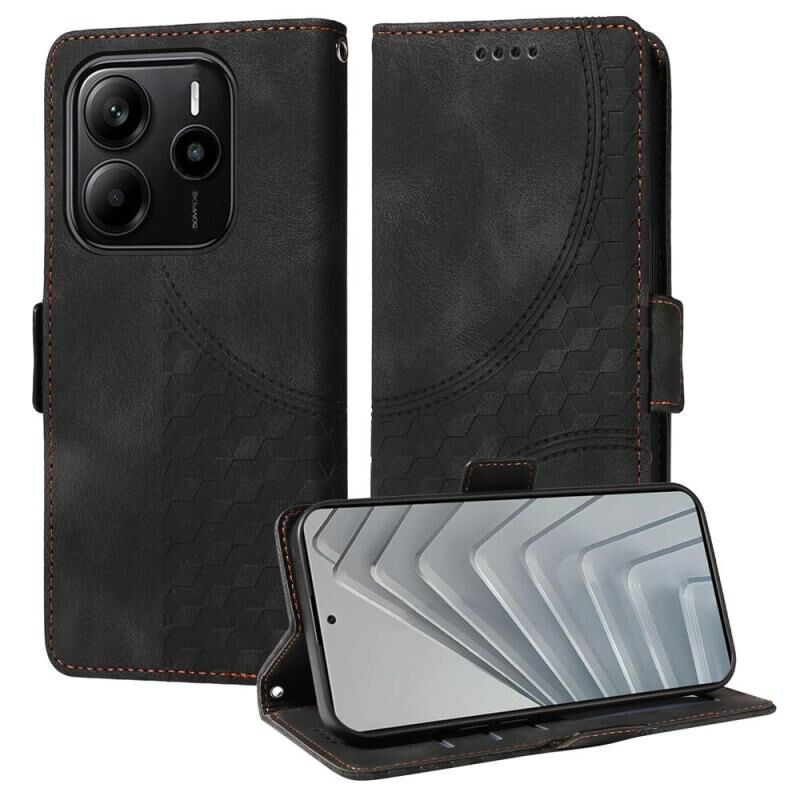 Θήκη τηλεφώνου από δέρμα με ανάγλυφο ρόμβο και αστρικό σχέδιο για Redmi Note 14 4G 163.25mm (Παγκόσμια έκδοση) (Πράσινη)