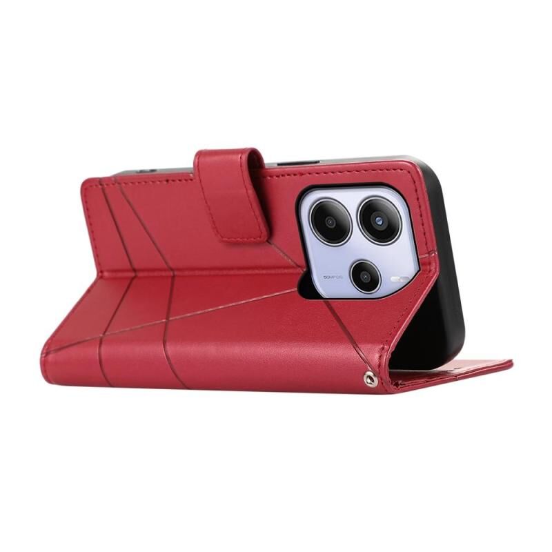 Θήκη τηλεφώνου για Redmi Note 14 4G 163.25mm Global από γνήσιο δέρμα PU με ανάγλυφη υφή και γραμμές (Μαύρο)