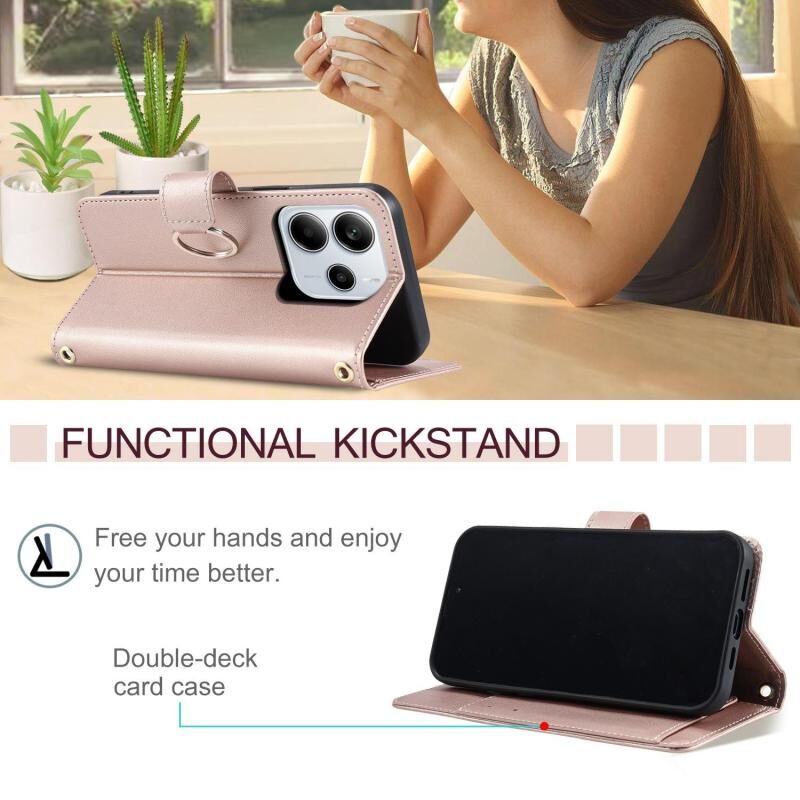For Redmi Note 14 4G 163.25mm Global Ring Buckle Rhombic Leather Phone Case(Rose Gold)