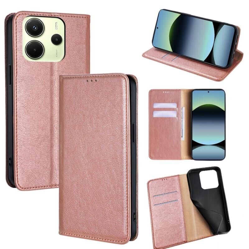 For Redmi Note 14 4G 163.25mm Gloss Oil Solid Color Magnetic Leather Phone Case(Rose Gold)
