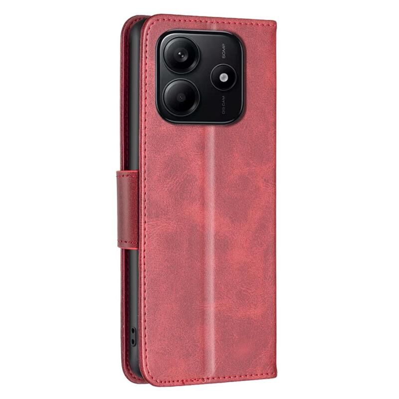 For Redmi Note 14 4G 163.25mm Lambskin Texture Pure Color Flip Leather Phone Case(Red)