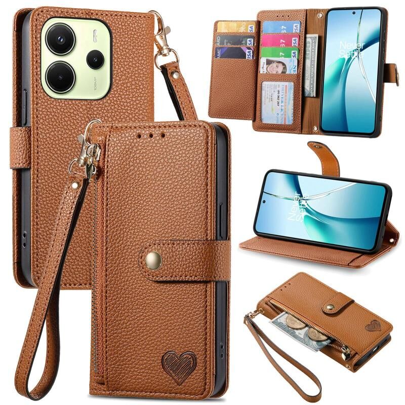 Θήκη τηλεφώνου από δέρμα με φερμουάρ και λουρί για Redmi Note 14 4G 163.25mm (Μαύρο)