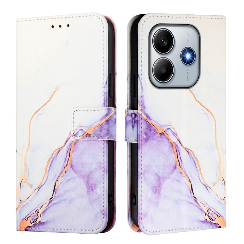 For Redmi Note 14 4G 163.25mm PT003 Marble Pattern Flip Leather Phone Case(White Purple)