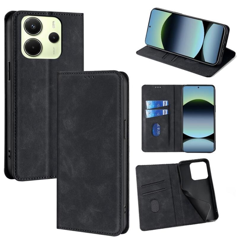 For Redmi Note 14 4G 163.25mm Skin Feel Magnetic Leather Phone Case(Black)