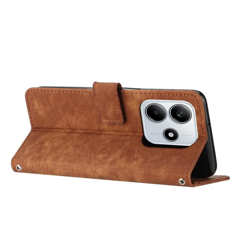 Για Redmi Σημείωση 14 4G 163.25mm δέρμα αίσθηση λωρίδα μοτίβο δερμάτινη θήκη τηλεφώνου με μακρύ κορδόνι (καφέ)