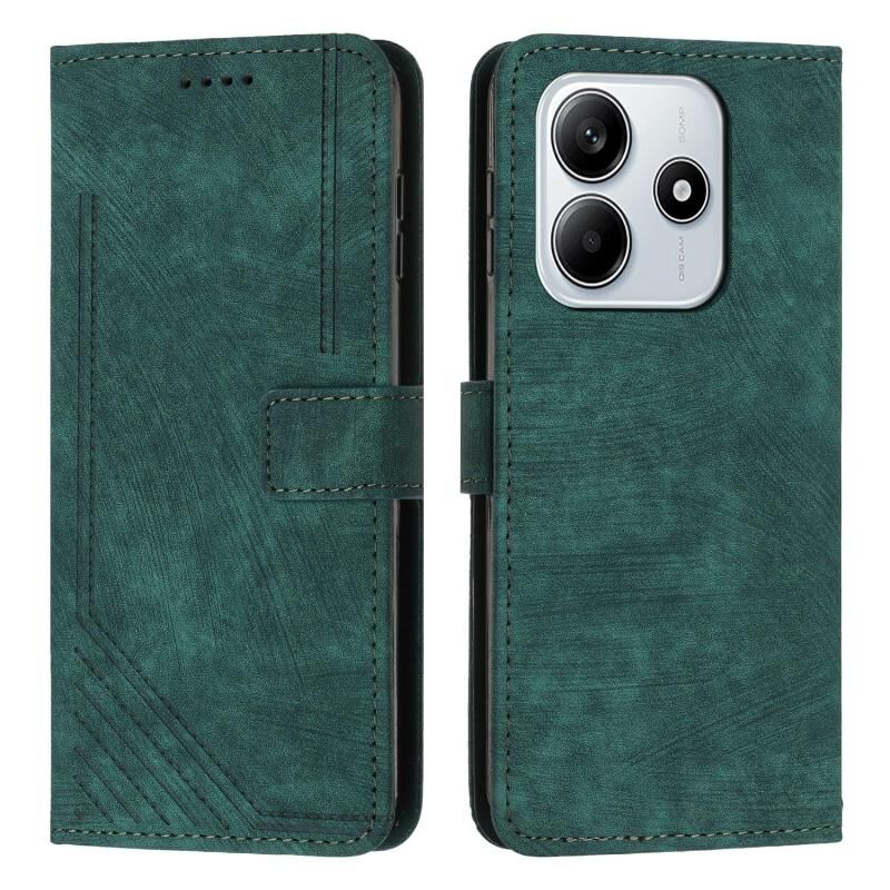 Για Redmi Σημείωση 14 4G 163.25mm δέρμα αίσθηση λωρίδα μοτίβο δερμάτινη θήκη τηλεφώνου με μακρύ κορδόνι (πράσινο)