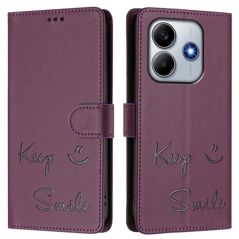 For Redmi Note 14 4G 163.25mm Smile Embossing RFID Leather Phone Case(Violet)