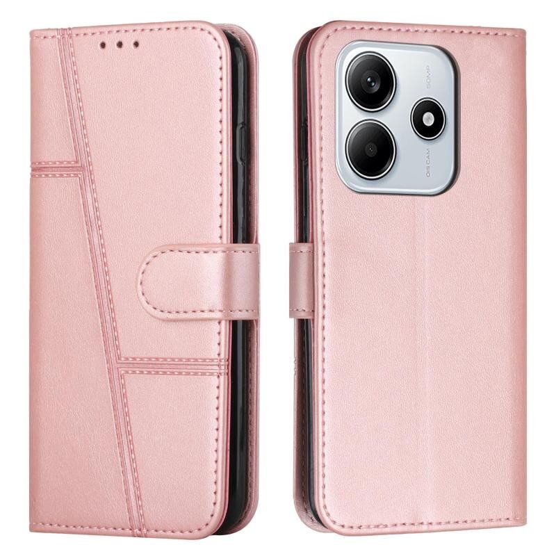 For Redmi Note 14 4G 163.25mm Stitching Calf Texture Buckle Leather Phone Case(Rose Gold)