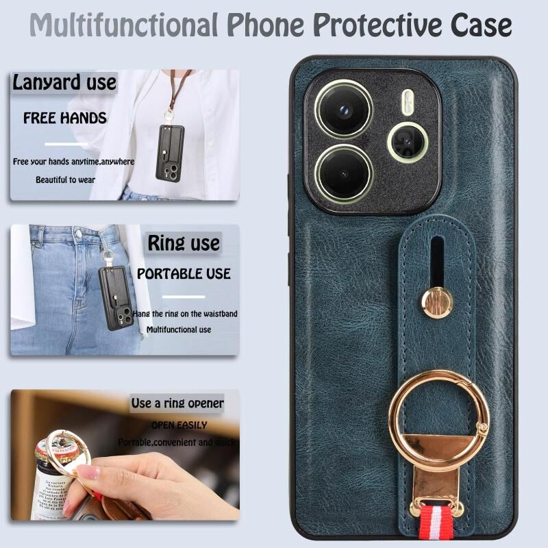 Για Bluemi Note 14 4G, Δερμάτινη θήκη κινητού με λουράκι καρπού, 163.25mm (Κόκκινο)