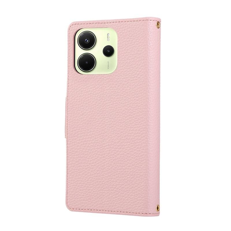 Για Redmi Note 14 4G, Δερμάτινη θήκη κινητού τηλεφώνου με αγκράφα και φερμουάρ, με λουρί crossbody (Ροζ)