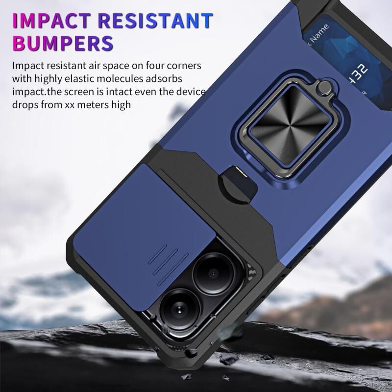 Θήκη τηλεφώνου για Redmi Note 14 4G 163mm με προστασία κάμερας, θήκη κάρτας, PC+TPU (Μαύρο)