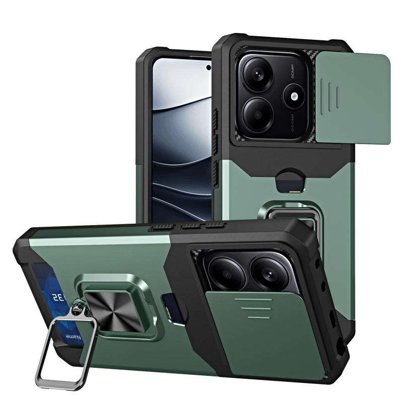 For Redmi Note 14 4G 163mm Camera Shield Card Slot PC+TPU Phone Case(Dark Green)