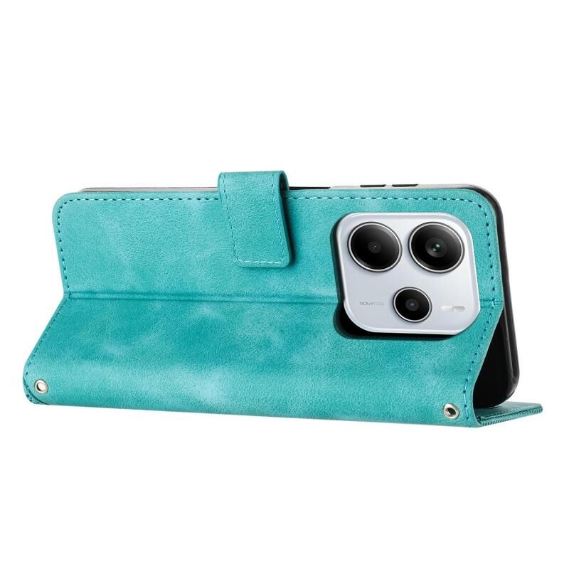 Θήκη τηλεφώνου από δέρμα Dream Triangle για Redmi Note 14 4G 164.84mm με μακρύ κορδόνι (Μπλε)