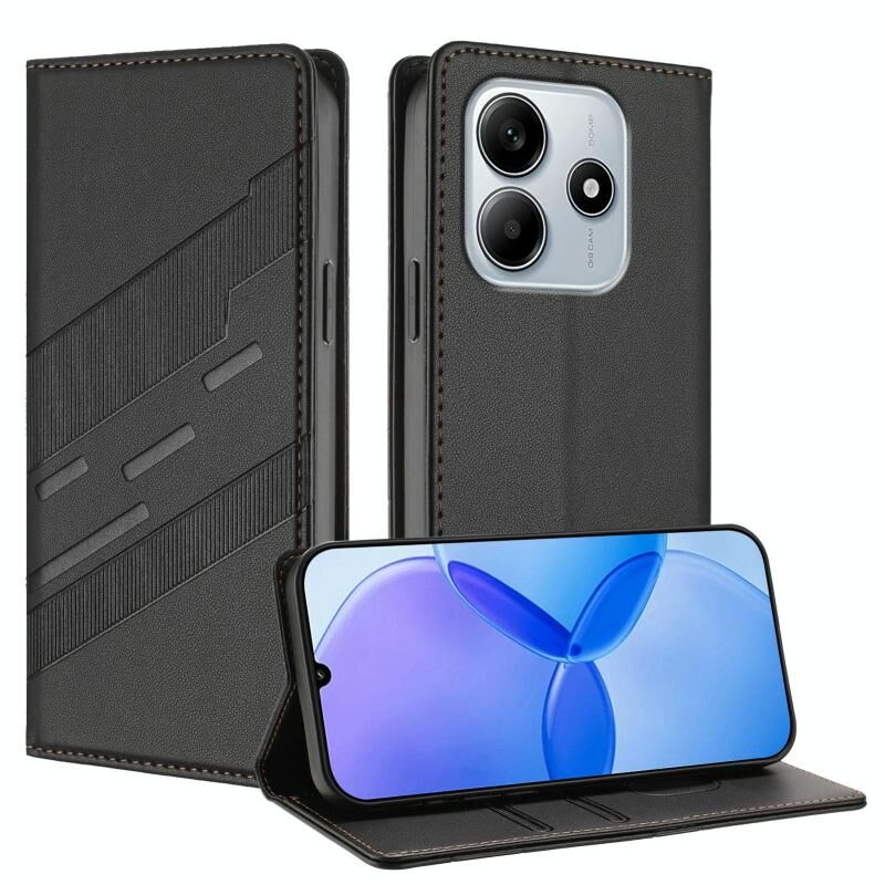 Για Redmi Note 14 4G 164.84mm Θήκη Τηλεφώνου Δερμάτινη Ρετρό, Πολυλειτουργικό Πορτοφόλι με ανάγλυφο σχέδιο (Μαύρο)