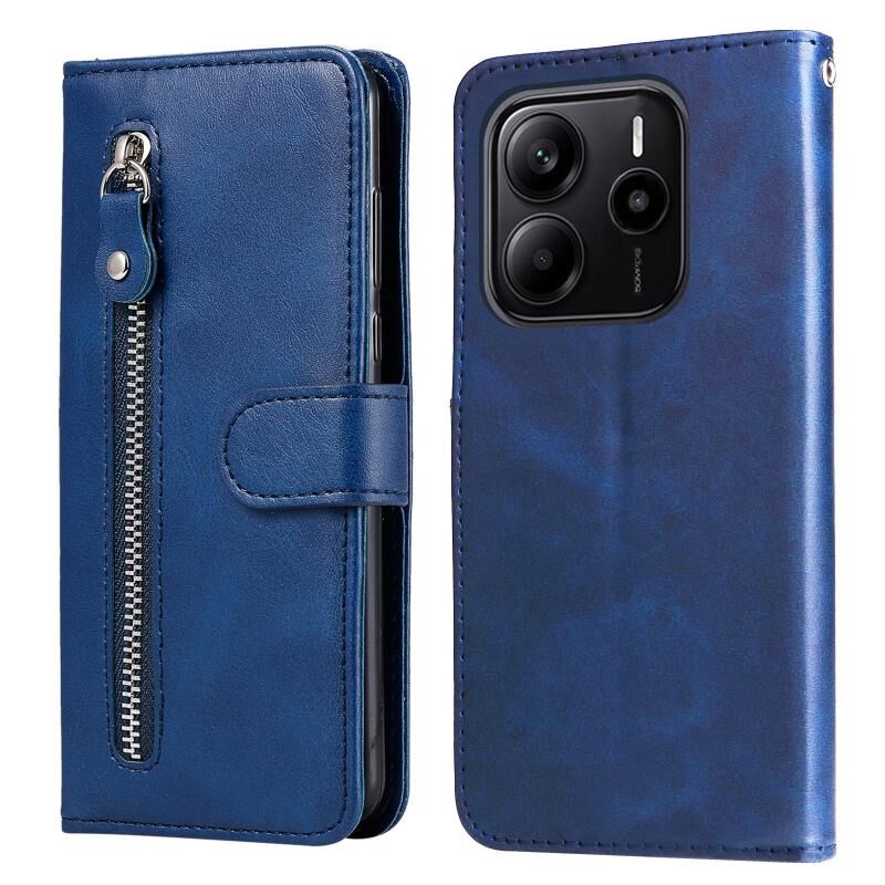 For Redmi Note 14 4G 164.84mm Fashion Calf Texture Zipper Leather Phone Case(Blue)