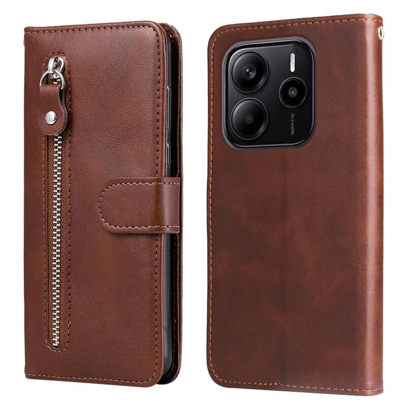 For Redmi Note 14 4G 164.84mm Fashion Calf Texture Zipper Leather Phone Case(Brown)