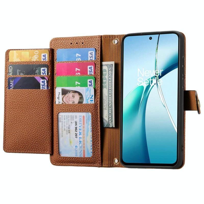 Θήκη τηλεφώνου από δέρμα με φερμουάρ και λουρί για Redmi Note 14 4G 164.84mm (Καφέ)