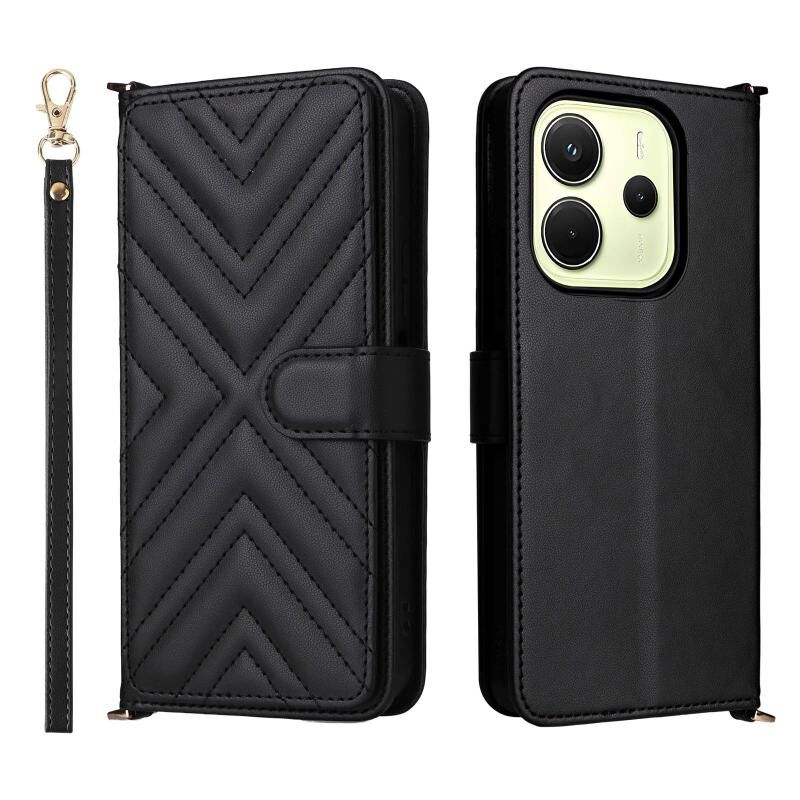 Θήκη τηλεφώνου από δέρμα με πολλαπλές λειτουργίες και 6 υποδοχές καρτών, με λουρί καρπού για Redmi Note 14 4G 164.84mm (Ροζ)