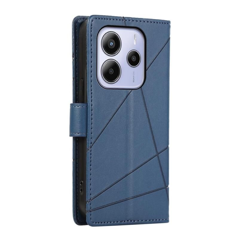 Θήκη τηλεφώνου για Redmi Note 14 4G 164.84mm, γνήσιο δέρμα PU με ανάγλυφη υφή και γραμμές (Μπλε)