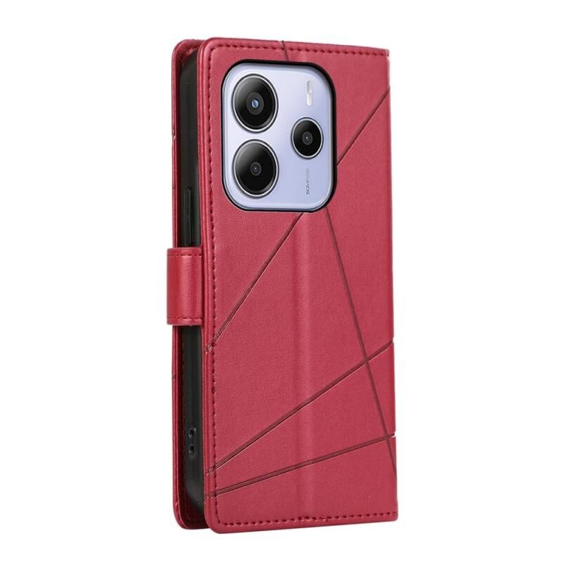 Θήκη τηλεφώνου για Redmi Note 14 4G 164.84mm, γνήσιο δέρμα PU με ανάγλυφη υφή και γραμμές (Μπλε)