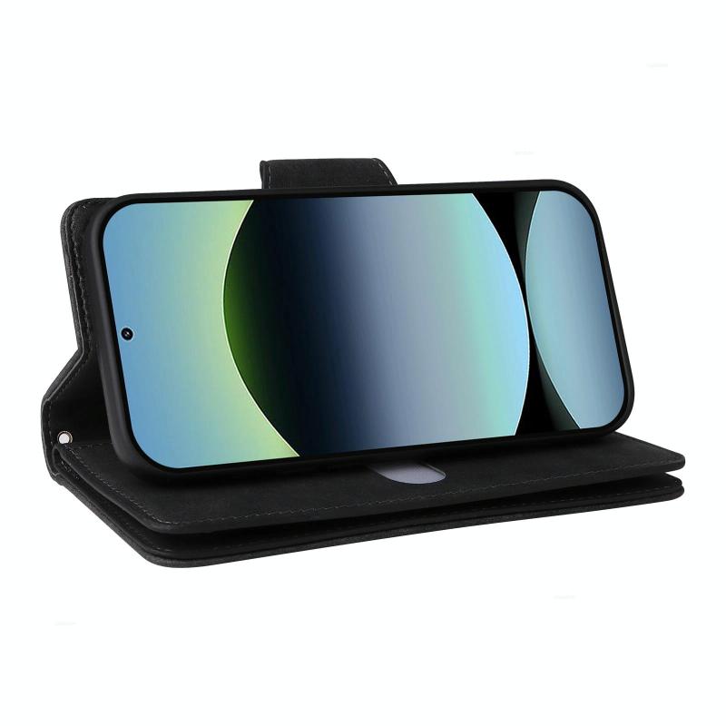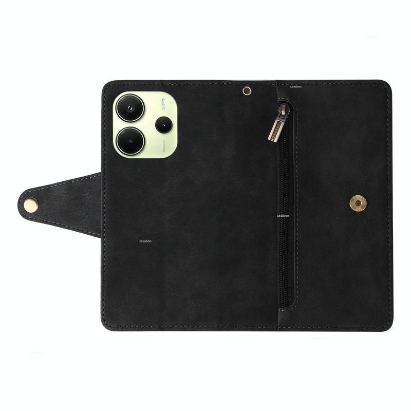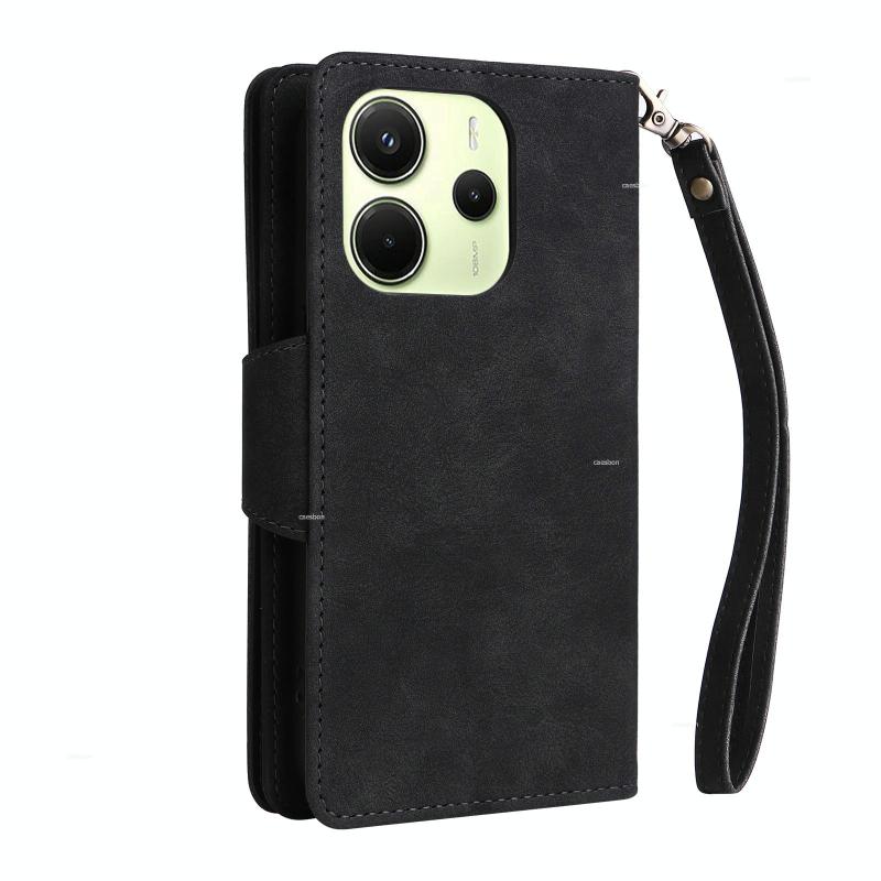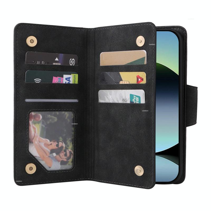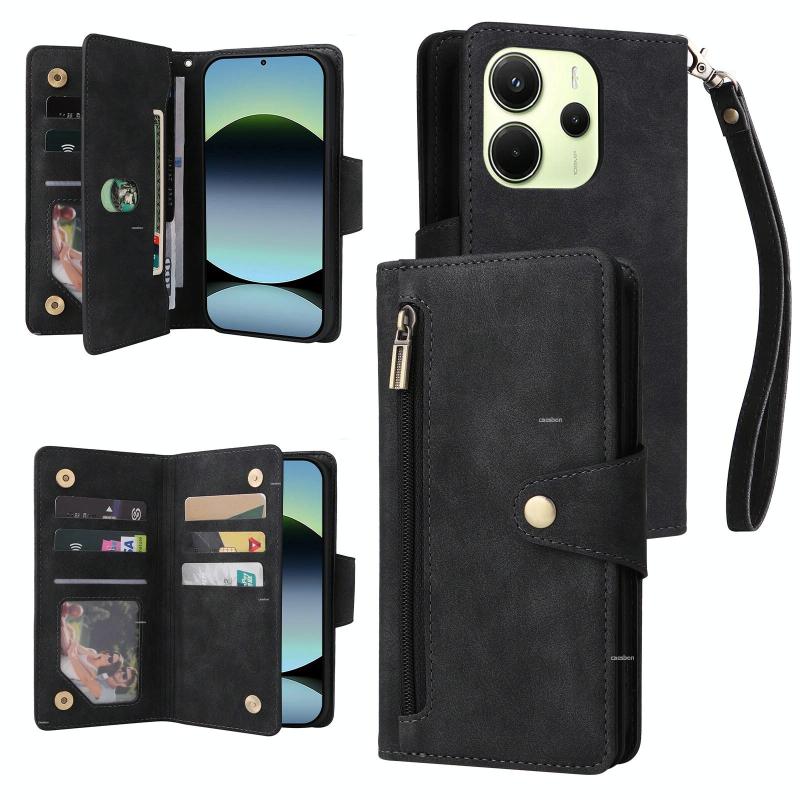 For Redmi Note 14 4G 164.84mm Rivet Buckle 9 Cards Three Fold Leather Phone Case(Black)