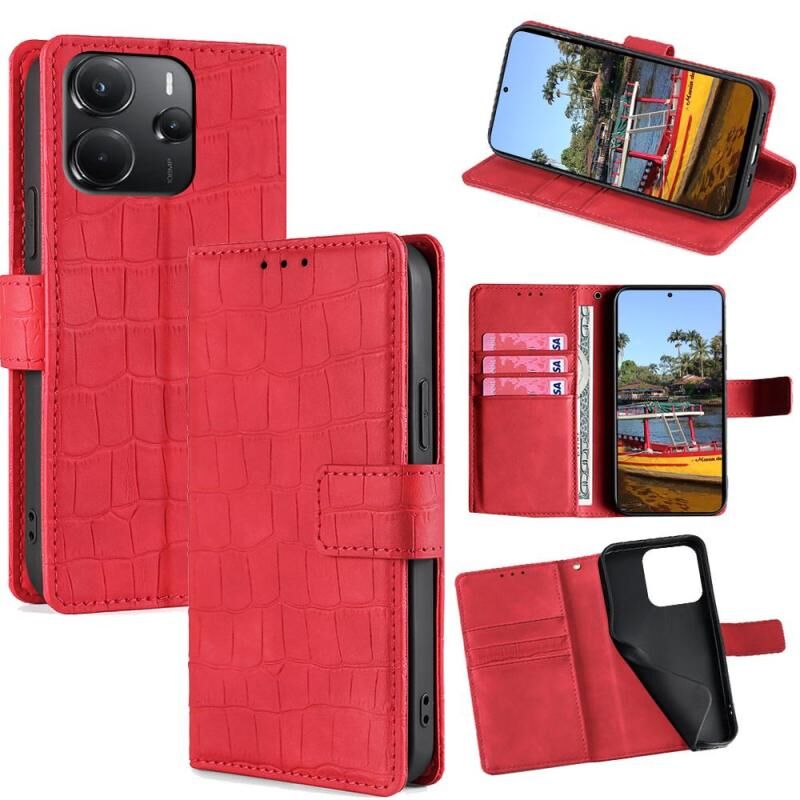 Θήκη τηλεφώνου από δέρμα με μαγνητικό κούμπωμα και υφή κροκόδειλου για Redmi Note 14 4G 164.84mm (Μαύρο)