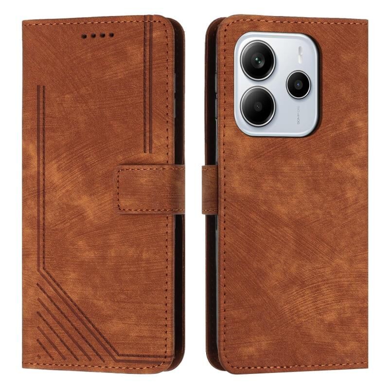 For Redmi Note 14 4G 164.84mm Skin Feel Stripe Pattern Leather Phone Case with Long Lanyard(Brown)