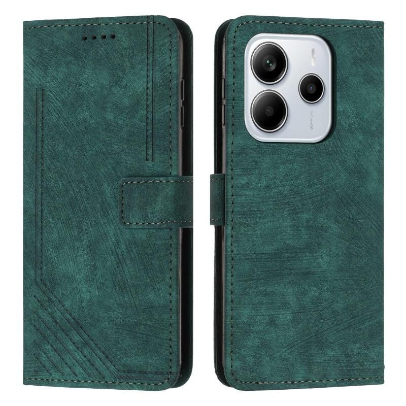 Θήκη τηλεφώνου από δέρμα με υφή και ραβδωτό σχέδιο για Redmi Note 14 4G 164.84mm με μακρύ κορδόνι (Καφέ)
