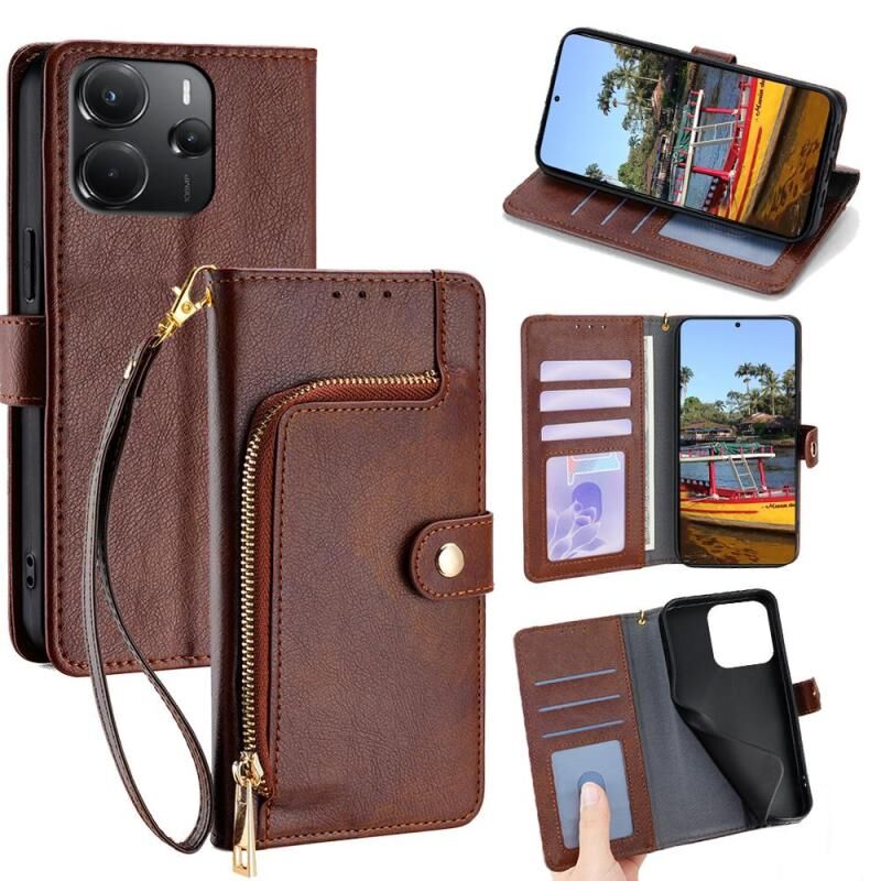 Θήκη τηλεφώνου από δέρμα με φερμουάρ για Redmi Note 14 4G 164.84mm (Μαύρο)