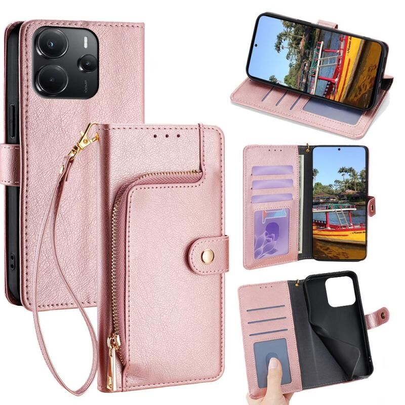 Θήκη τηλεφώνου από δέρμα με φερμουάρ για Redmi Note 14 4G 164.84mm (Μαύρο)