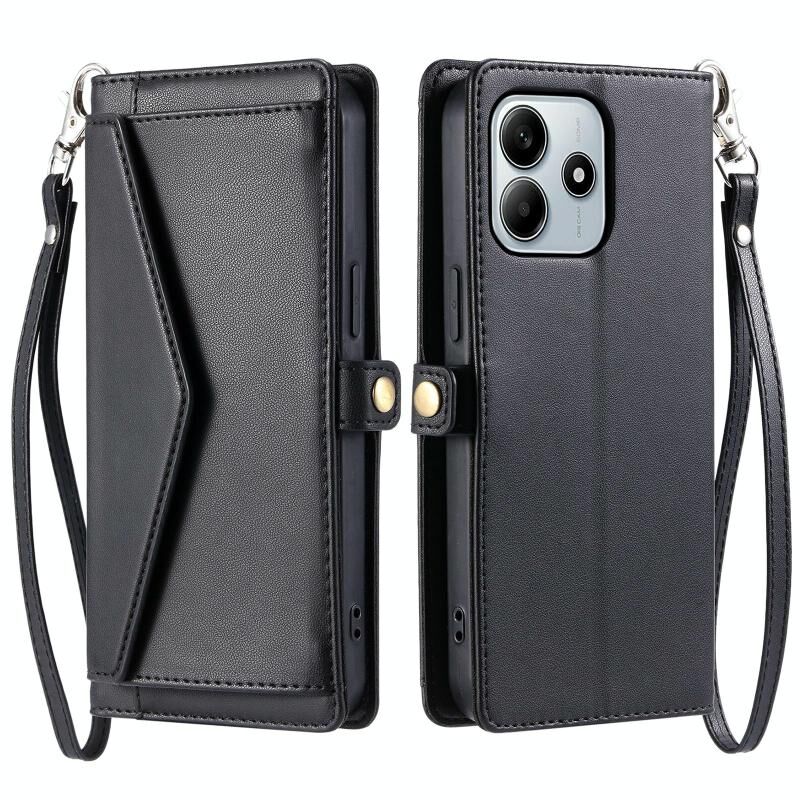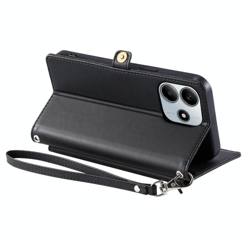 Για Redmi Note 14 4G ΕΕ 164.84mm Πορτοφόλι Multi-card Slot Δερμάτινη θήκη τηλεφώνου με κορδόνι (Μαύρο)