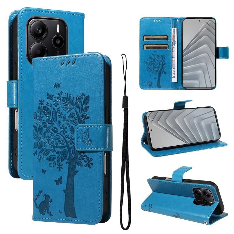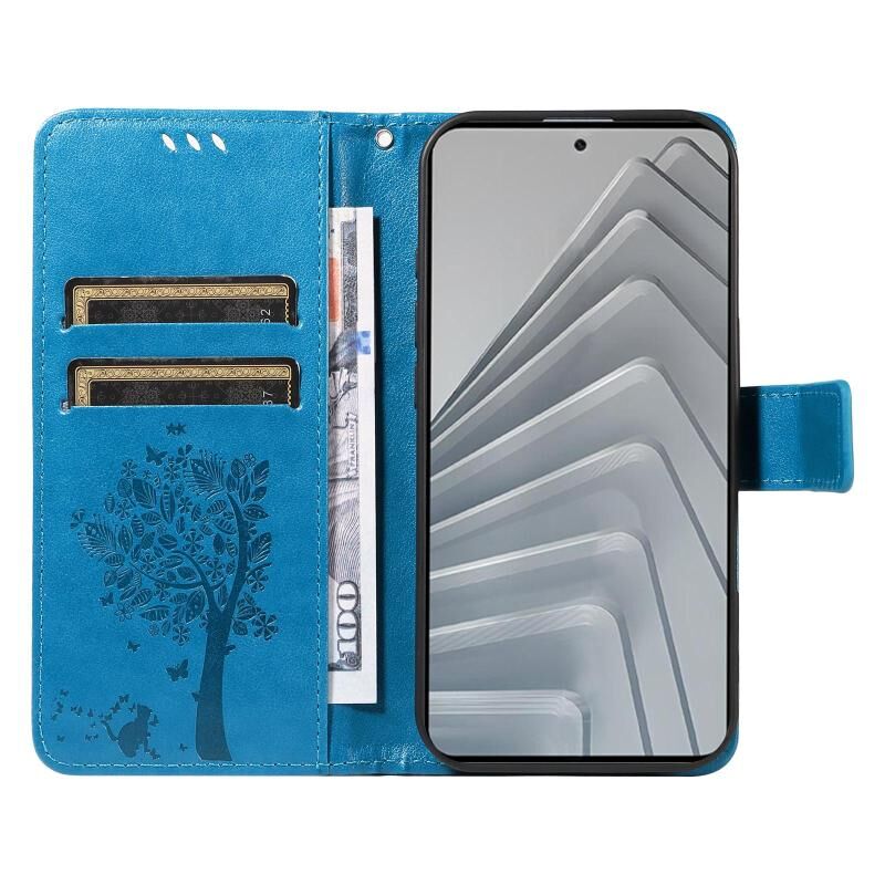 Θήκη τηλεφώνου από δέρμα με σχέδιο αναγλύφου δέντρου & γάτας, τύπου flip, για Redmi Note 14 4G Global (163.25mm) (Ροζ)