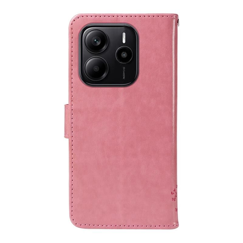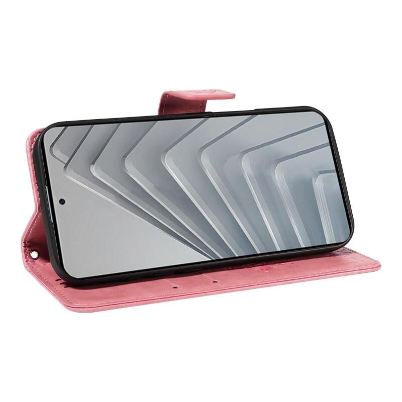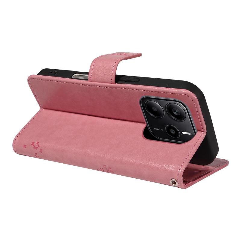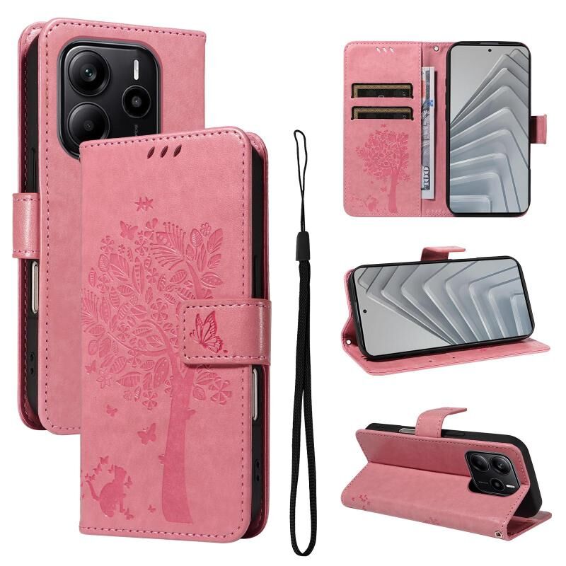 Θήκη τηλεφώνου από δέρμα με σχέδιο αναγλύφου δέντρου & γάτας, τύπου flip, για Redmi Note 14 4G Global (163.25mm) (Ροζ)