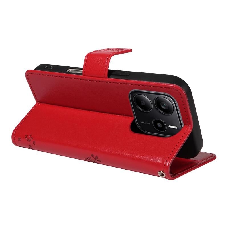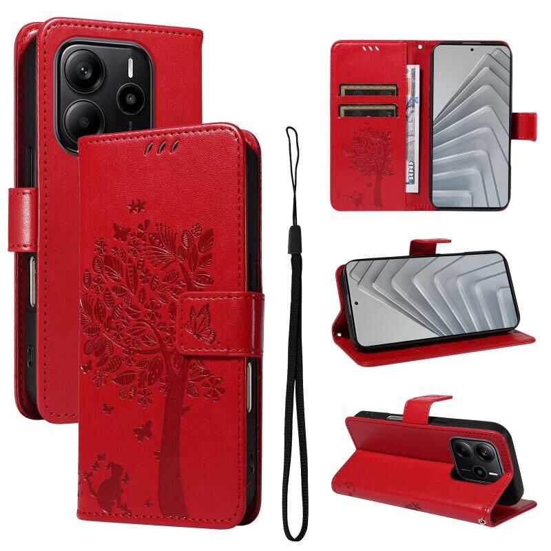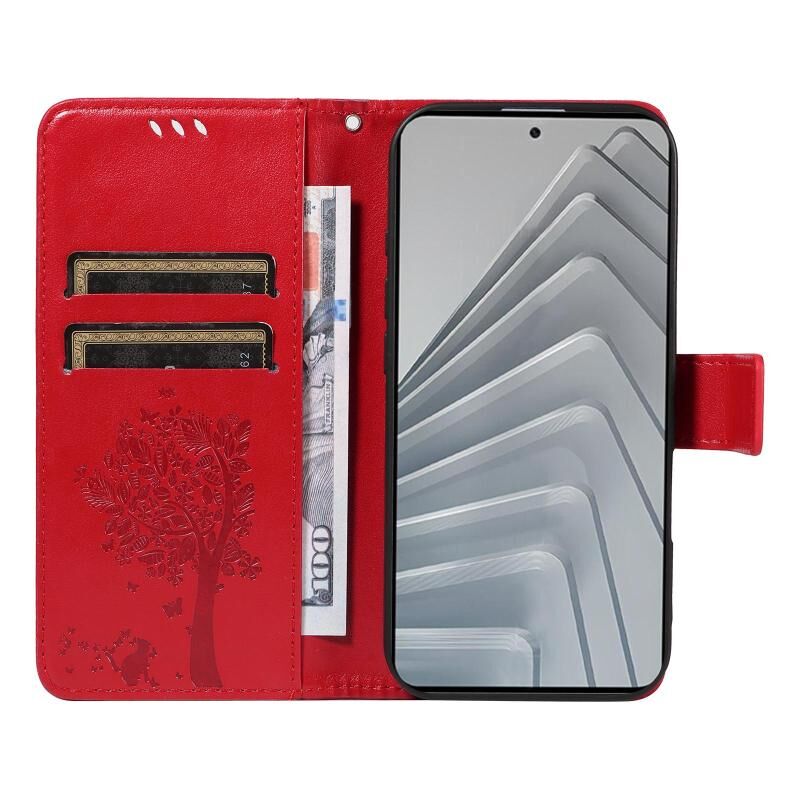 Θήκη τηλεφώνου από δέρμα με σχέδιο αναγλύφου δέντρου & γάτας, τύπου flip, για Redmi Note 14 4G Global (163.25mm) (Ροζ)