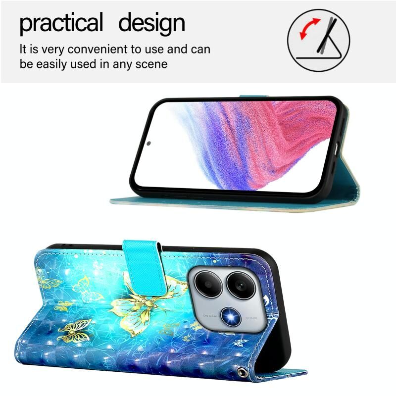 Θήκη τηλεφώνου δερμάτινη με οριζόντιο άνοιγμα και 3D ζωγραφική για Redmi Note 14 5G (Χρυσή Πεταλούδα)