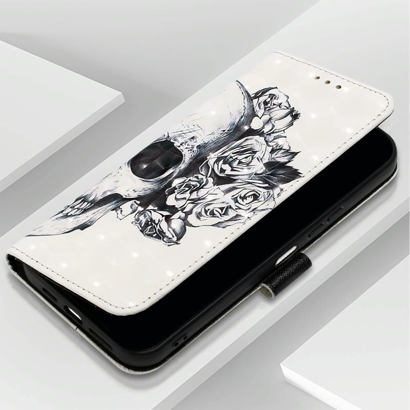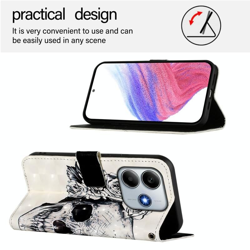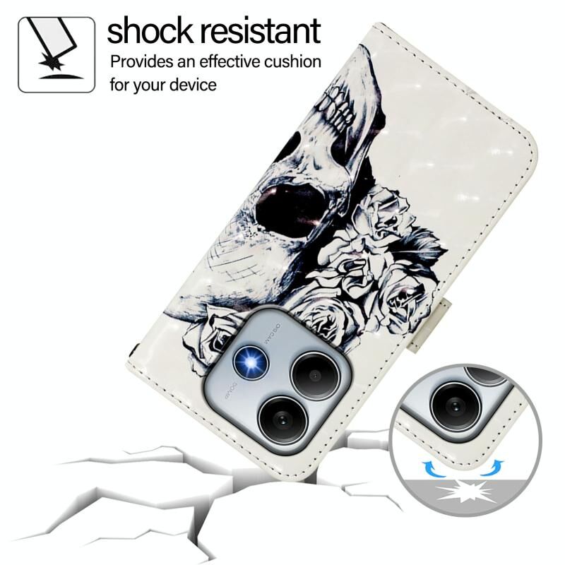 Θήκη τηλεφώνου από δέρμα με οριζόντιο άνοιγμα και τρισδιάστατη ζωγραφική για Redmi Note 14 5G (Κρανίο)