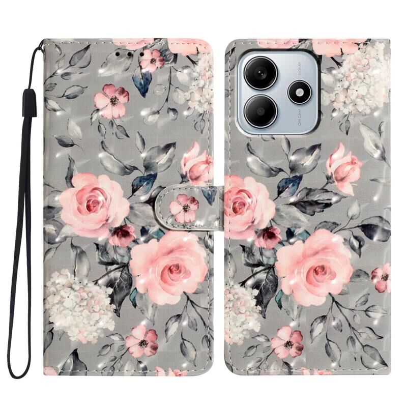 Θήκη τηλεφώνου από δέρμα με 3D σχέδιο για Redmi Note 14 5G (3D Ροζ Μπλε Μάρμαρο)